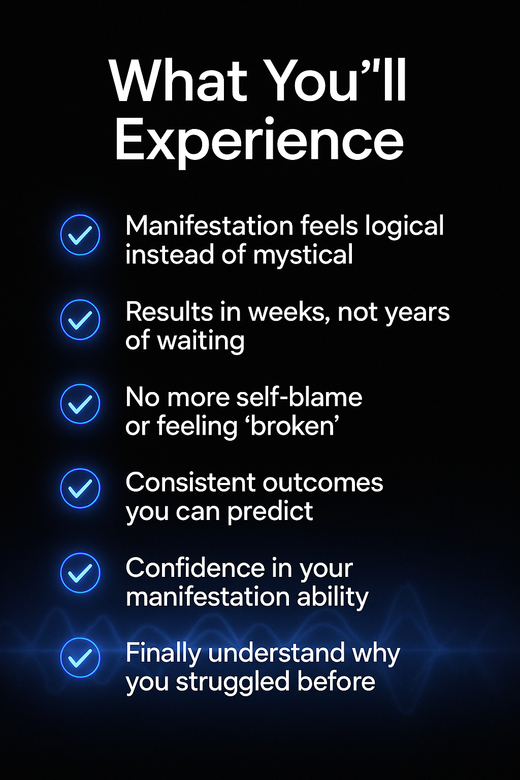 Previous failures likely happened because you were using methods designed for different brain patterns. This system is calibrated specifically for how YOUR brain processes reality creation.